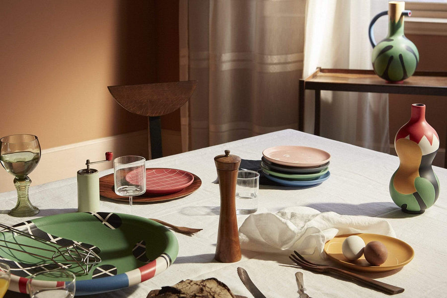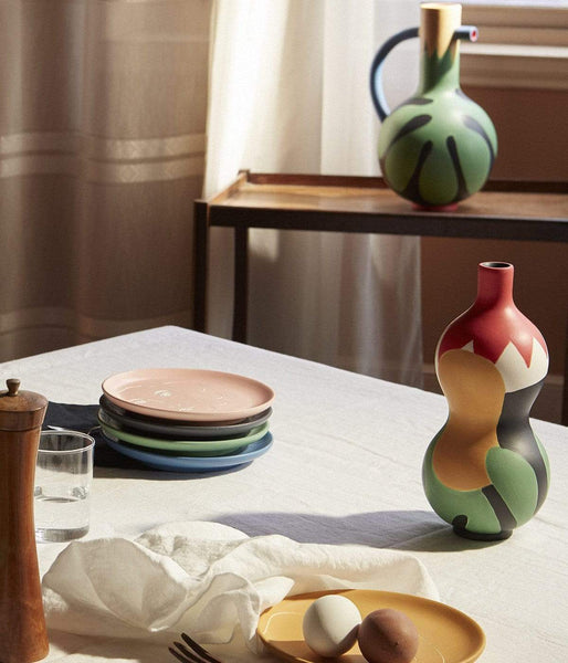 The Double-point dessert plate is part of a collection of 6 earthenware dessert plates created in collaboration with designer Marta Bakowski. They reveal the universe of Henri Matisse’s painting La Musique (1939) through a range of 6 different colors and 6 different patterns. Sold individually and suitable for food use, they can be combined to compose a unique, joyful and varied service according to your desires.
