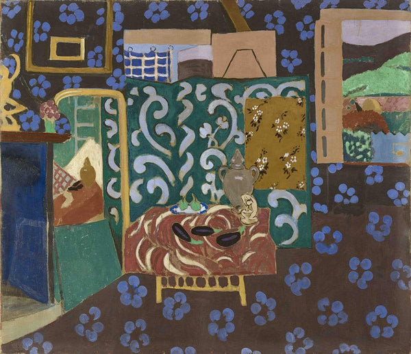 For the permanent collection Intérieur aux aubergines, Maison Matisse was inspired by Henri Matisse's eponymous painting from 1911 and collaborated with the Italian designer Cristina Celestino. This choice seemed self-evident. The designer’s world is perfectly adapted to that of the artist’s painting in this particularly decorative canvas where the planes deeply superimpose each other.