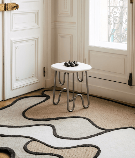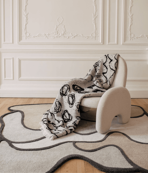 The Coquillage rug is a decorative piece that is the result of a meeting between art and craft. British designer Faye Toogood created this rug inspired by Henri Matisse's black and white drawings to create organic shapes and harmonious curves. The choice of hand-tufted wool allows for a high quality of weave that ensures both durability and a pleasant feel.