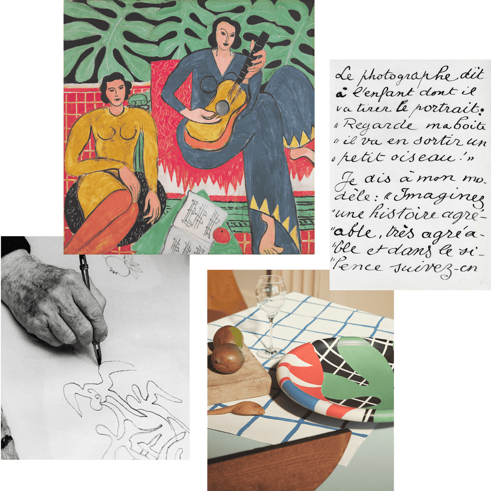 Dans la collection Intérieur aux Aubergines, les tissus des assises, du paravent, du papier-peint décoratif et des coussins, ont été réalisés en fils naturels de coton et viscose par une manufacture vénitienne qui date du XVIIIe siècle. Ici, des métiers à tisser Jacquard de la plus haute technologie ont été mis à disposition pour créer selon la technique des Gobelins deux modèles de lampas, l'un à motif de feuillages, l'autre à motif de poires.