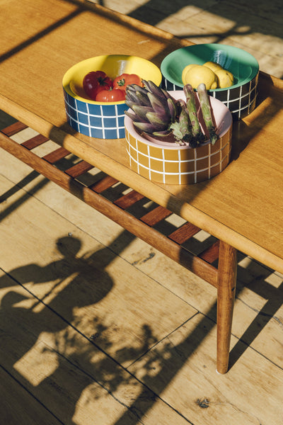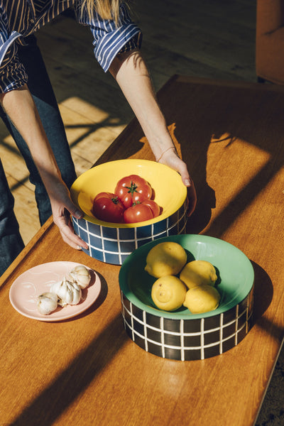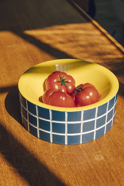 Inspiré du tableau La Musique peint en 1939 par Henri Matisse, le centre de table Carré a été imaginé au sein du Studio de création de Maison Matisse, et reprend à la fois la palette de couleur de l'œuvre mais aussi l'un de ses symboles clés : le quadrillage. Venant compléter la collection La Musique, ce centre de table en faïence est entièrement fabriqué en Italie, dans un atelier au savoir-faire unique témoin de l'excellence Italienne.