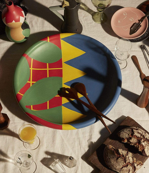 Le grand plat Canon est l'une des pièces iconiques et peinte à la main de la collection La Musique, composée d'un ensemble d'objets en faïence imaginé en collaboration avec la designer Marta Bakowski.