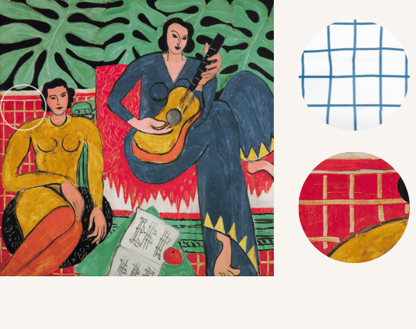 Le papier-peint Carré réinterprète le quadrillage présent dans le tableau La Musique peint en 1939 par Henri Matisse et principale inspiration de la collection homonyme.