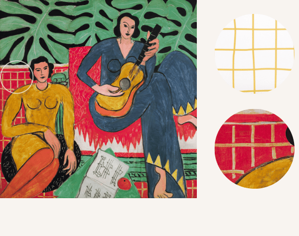 Le papier-peint Carré réinterprète le quadrillage présent dans le tableau La Musique peint en 1939 par Henri Matisse et principale inspiration de la collection homonyme.