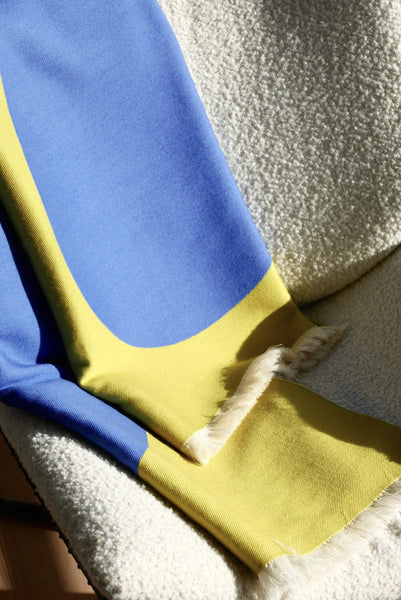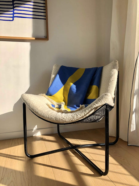 Le plaid, objet de chaleur et de convivialité, a trouvé sa place depuis plusieurs années dans de nombreux décors, classiques ou contemporains. Maison Matisse souhaite donner, à travers ce plaid Contrepoint en laine et coton, une version personnelle du tableau La Musique (1939) d'Henri Matisse.