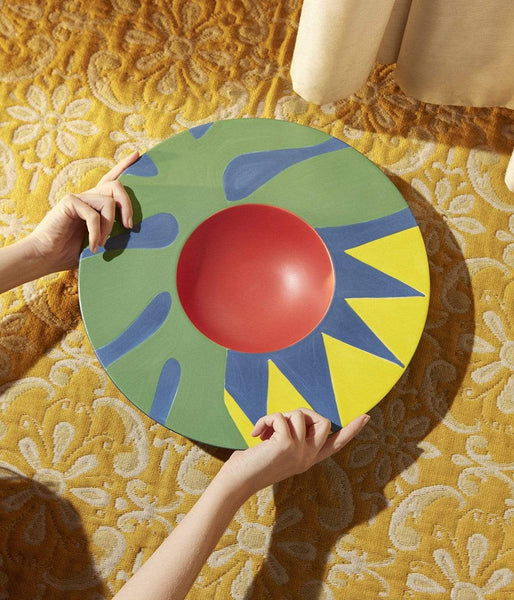 Le plat creux Sol est le fruit de la collaboration entre la designer franco-polonaise Marta Bakowski et Maison Matisse. Entièrement peint à la main, il est un incontournable de la collection La Musique, s’inscrivant dans un ensemble d’objets aux couleurs vives et chaleureuses.
