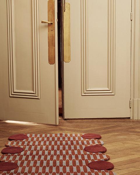 Cristina Celestino s'est inspirée du tableau Intérieur aux aubergines d'Henri Matisse (1911) pour définir la palette de couleur de ce tapis, parfaitement développée par le "Maitre de la couleur".