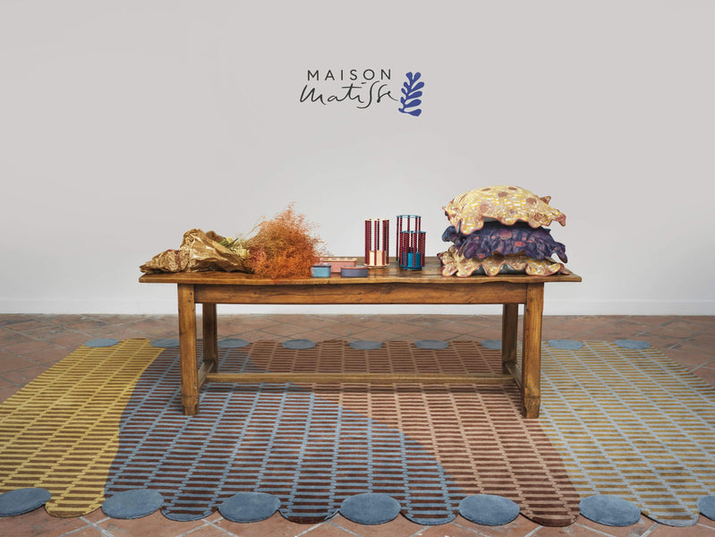 Pour la collection permanente Intérieur aux aubergines, composée de plusieurs assises (canapés, fauteuils), tables basses, paravents, linge de maison, papiers-peints et objets de décoration, Maison Matisse a souhaité s'inspirer de la toile éponyme d'Henri Matisse peinte en 1911 et collaborer avec la designer italienne Cristina Celestino. Cette collaboration s'est imposée comme une évidence, l'univers de la designer s'adaptant parfaitement à celui que l'artiste a peint dans cette toile particulièrement décorative où les plans se superposent en profondeur.